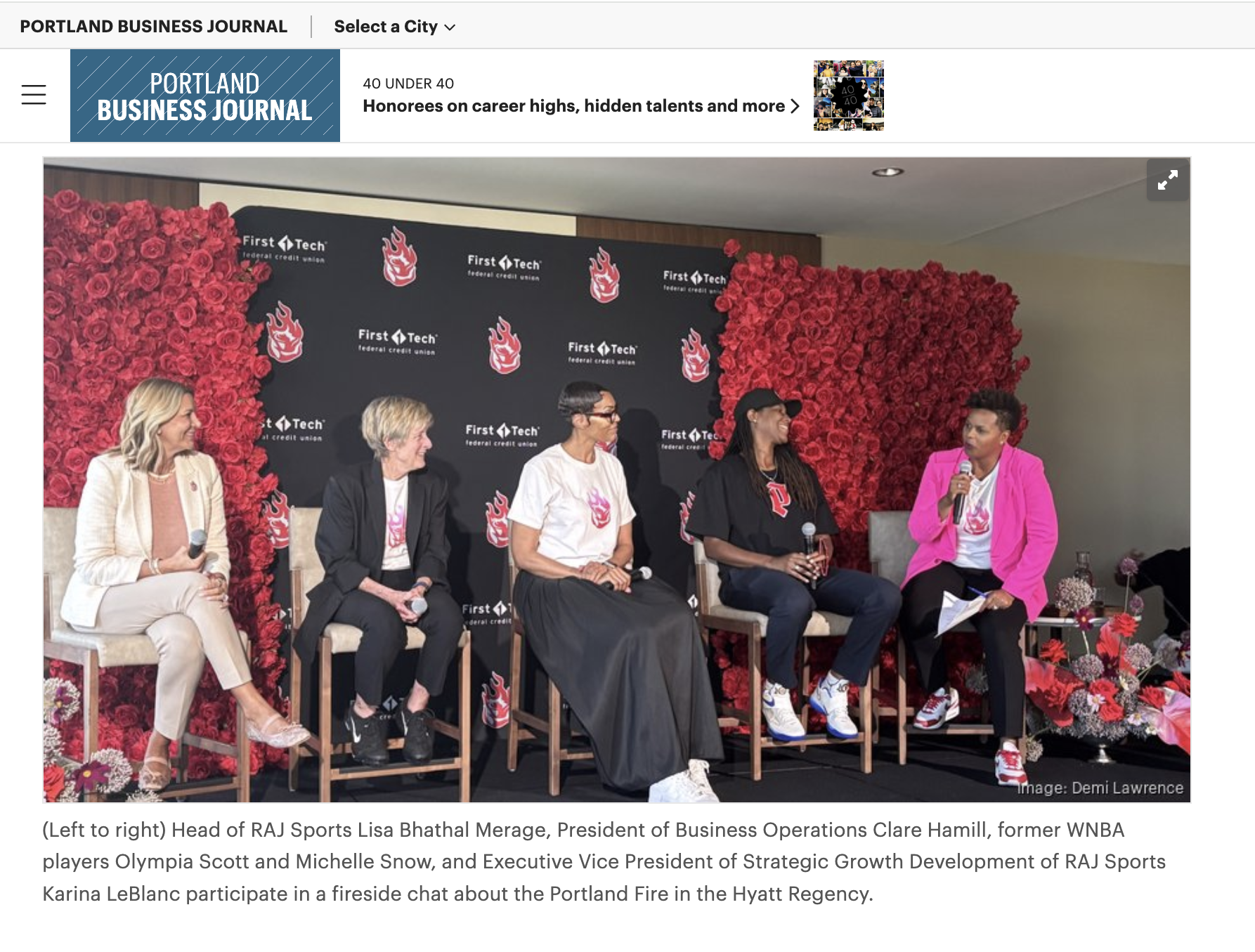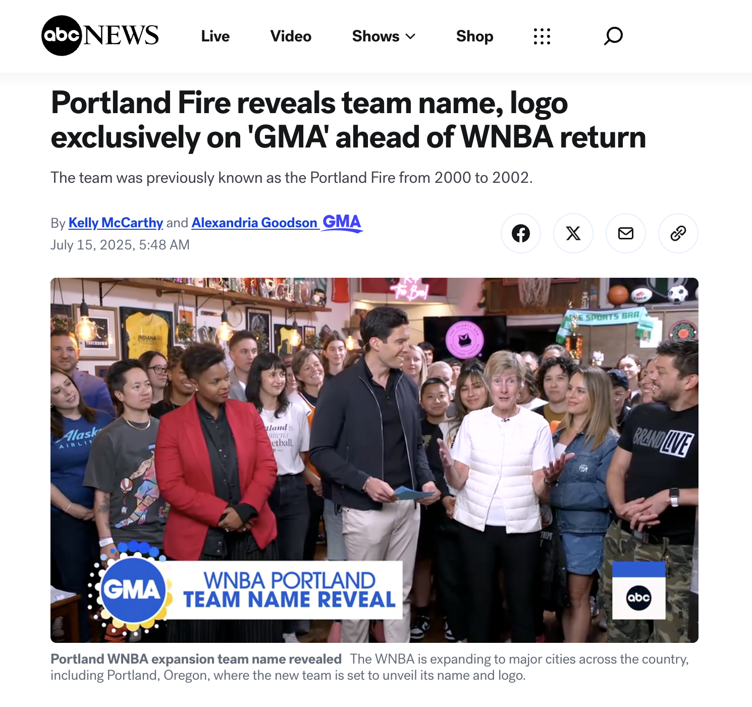 Coverage for Clare’s announcement as WNBA President and the Portland Fire name and logo reveal: