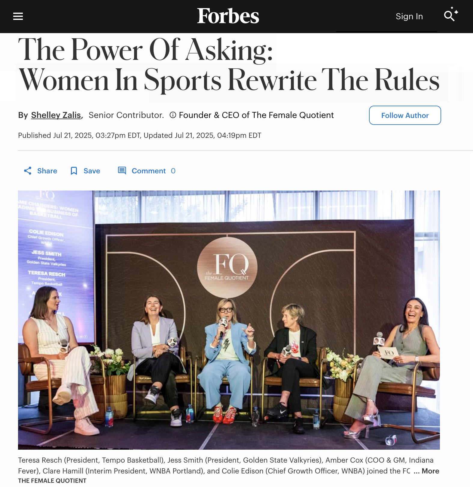 Key panelist at the Global Epicenter of Women's Sport Summit (covered by Forbes).